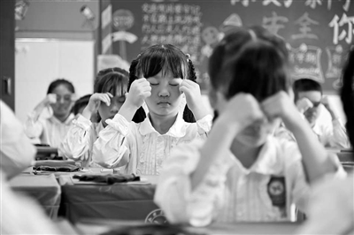 9月24日,重慶市沙坪壩區(qū)紅糟房小學(xué)的學(xué)生正在做眼保健操。 孫凱芳 攝