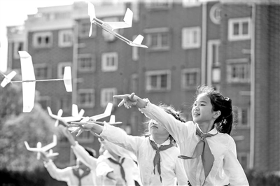 近日,江蘇省南通市通州區(qū)實驗小學(xué)的學(xué)生在操場上放飛自己制作的橡筋動力滑翔機。