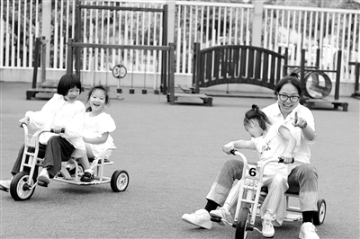孩子們騎著從“租車行”租來的車在幼兒園穿行。 王名瀟 供圖