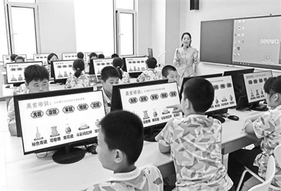 近日,數(shù)智時代國防教育創(chuàng)新實踐交流研討活動在北京市第二十中學(xué)附屬育鷹小學(xué)舉行?;顒又荚谕ㄟ^人工智能和國防教育現(xiàn)場課等形式,展示人工智能技術(shù)在教育尤其是國防教育中的創(chuàng)新和應(yīng)用。 新華社記者 馬寧 攝