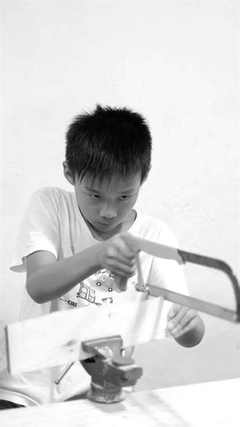 圖① 四川省廣元市利州區(qū)范家小學(xué)學(xué)生在做木工。