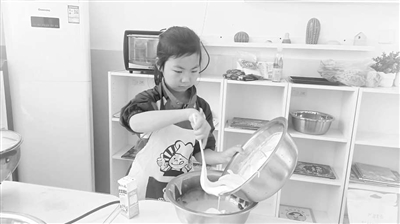 圖③ 四川省廣元市利州區(qū)范家小學(xué)學(xué)生在制作蛋糕。 學(xué)校供圖