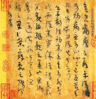 西晉陸機(jī)《平復(fù)帖》 《平復(fù)帖》是西晉文學(xué)家陸機(jī)向友人問(wèn)候疾病的一封書信,書寫年代距今已有1700余年,是現(xiàn)存最早的紙質(zhì)書信,現(xiàn)藏于故宮博物院。《平復(fù)帖》同時(shí)也是傳世最早的書法真跡,共9行84字,因其中有“恐難平復(fù)”字樣,故名。(資料圖片)