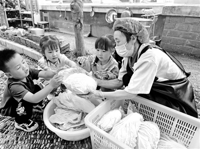 ③廚師教幼兒認識蔬菜。方笑娟 供圖