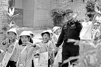 入園時,保安與民警、志愿者一同迎接幼兒。遇到情緒低落的幼兒,他們會主動迎上、抱進園內(nèi)。離園時,保安與幼兒互道再見,完成溫馨的離園儀式。他們更是有心的觀察者:一次,有家長隨手丟果皮,一名幼兒主動撿起扔進垃圾桶。保安立刻表揚幼兒,并倡議家長“向幼兒學習”。