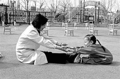 ⑤保健醫(yī)生帶幼兒做運動。趙杰 攝