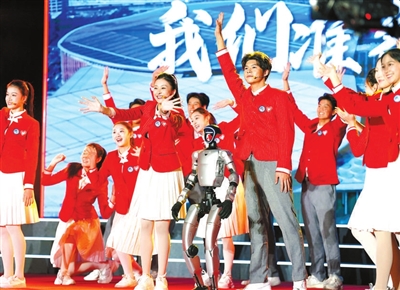 志愿者在儀式現(xiàn)場表演舞蹈。