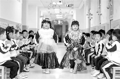 近日,山東省青島市李滄區(qū)青峰路幼兒園開展“勤儉節(jié)約 變廢為寶”主題活動(dòng),圖為小朋友展示用廢棄物品制作的“環(huán)保時(shí)裝”。 張鷹 攝