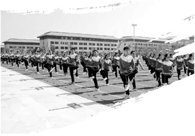 晉城一中學(xué)生正在做學(xué)校創(chuàng)編的大課間武術(shù)操。 學(xué)校供圖