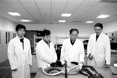 綠色造紙與資源循環(huán)全國重點(diǎn)實(shí)驗(yàn)室主任吉興香教授(左二)指導(dǎo)學(xué)生實(shí)驗(yàn)。