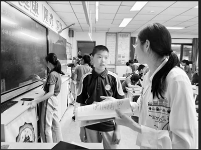 清華大學(xué)“國優(yōu)計劃”2025屆研究生王嵐在清華附小進行教育實踐,數(shù)學(xué)課后為學(xué)生答疑解惑。 資料圖片
