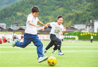 貴州省黔東南苗族侗族自治州從江縣剛邊壯族鄉(xiāng)中心小學足球社團的學生們在踢足球。通訊員 羅京來 攝