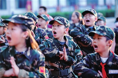 山東省淄博市高青縣田鎮(zhèn)學區(qū)中心小學利用課后服務(wù)時間開展國防教育社團活動。通訊員 張維堂 攝
