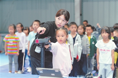 重慶市北碚區(qū)朝陽小學以社團建設(shè)為重點推進課后延時服務(wù),圖為孩子們在參加射擊社團活動。通訊員 秦廷富 攝