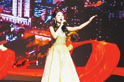 大學(xué)生在舞臺上演唱原創(chuàng)歌曲。