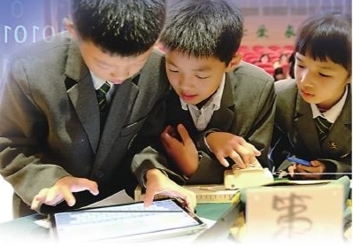 浙江省杭州綠城育華親親學(xué)校STEM課程中,學(xué)生借助人工智能了解各類環(huán)保材料性能。學(xué)校供圖