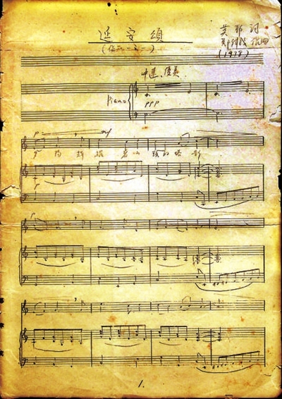 “給我寫首歌詞吧?!彼麑ι磉叺哪ǜ锩骷?,當(dāng)時(shí)在魯藝文學(xué)系學(xué)習(xí))說。莫耶同樣為此情此景所觸動,立即用隨身攜帶的紙筆寫下了歌詞。