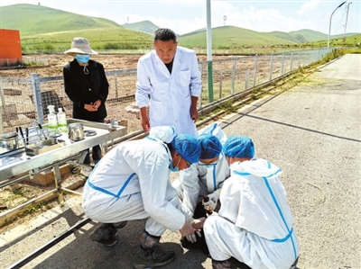 山東畜牧獸醫(yī)職業(yè)學(xué)院師生在青海牧場進行選育采樣。 山東省教育廳供圖