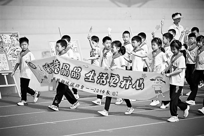 ①華中師大一附中光谷湯遜湖學(xué)校舉行愛眼趣味運動會。 武漢市青少年視力低下防制(預(yù)防控制)中心供圖