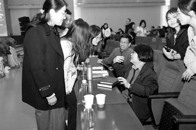 孟素琴在陜西省神木市實驗中學與教師交流閱讀。孟素琴 供圖