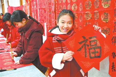 春節(jié)臨近,多地組織有書法特長的學(xué)生為社區(qū)居民義務(wù)書寫春聯(lián)和“?!弊郑媚闼蜕闲麓鹤8?。