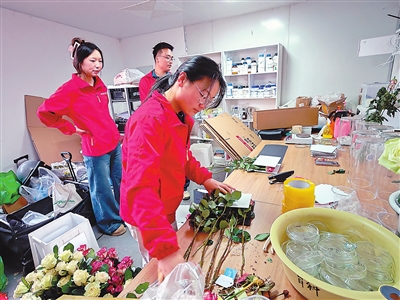 中國農(nóng)大研究生在進(jìn)行花卉新品種的采后處理。本報(bào)記者 張瀅 攝