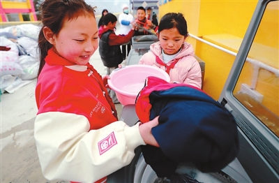 雷波縣箐口鄉(xiāng)中心校的學(xué)生們學(xué)習(xí)使用洗衣機洗滌衣物。該校正在試點寄宿制學(xué)校規(guī)范化管理,洗衣機由四川省教育融媒體中心捐贈。