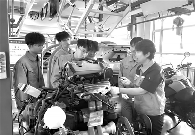 吉林交通職院將企業(yè)真實(shí)的車聯(lián)網(wǎng)故障診斷案例融入教學(xué),圖為師生在實(shí)訓(xùn)教學(xué)現(xiàn)場(chǎng)。 學(xué)校供圖
