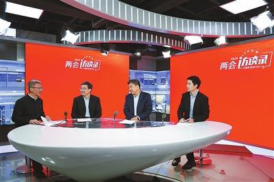 3月3日,全國政協(xié)委員,北京師范大學(xué)國家高端智庫教育國情調(diào)查中心主任、教授張志勇(右二),中共北京市委教育工作委員會(huì)副書記、北京市教委主任李奕(左二),國家博物館社會(huì)教育部主任、研究館員周靖程(左一)做客中國教育報(bào)刊社“兩會(huì)訪談錄”。馮子琪 攝