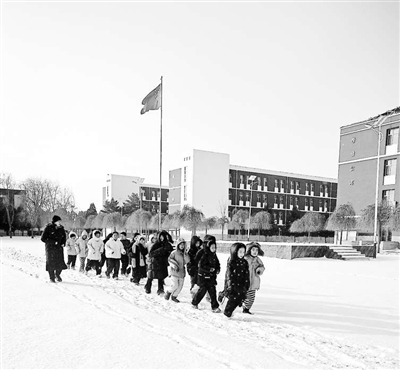 內(nèi)蒙古通遼市科爾沁區(qū)莫力廟勝利學(xué)校校長葛利軍(左一)與學(xué)生晨跑。本版圖片均由學(xué)校提供